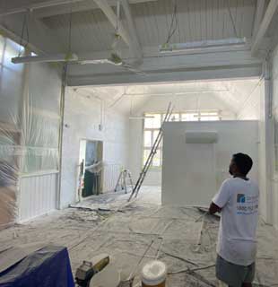 Prepare surfaces, apply primer, coats of paint, ensure even coverage, create desired aesthetic finish in painting.